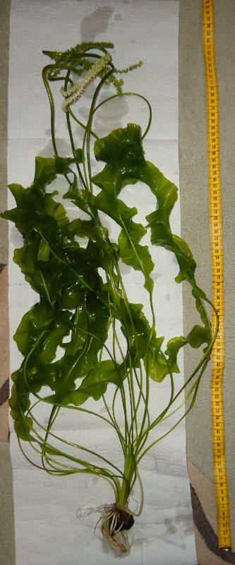 Das erste Bild ist von der echten Madagaskar-Wasserähre. Die habe ich bei Wasserflora vor paar Wochen gekauft, da war sie gerademal 20 cm lang und hatte drei Blätter... Mit V30 und A1-Dünger ist sie jetzt so rausgeschossen und hatte in ungezogenem Zustand schon knappe 80 cm. Hätte ich sie gezogen, wären es wohl 1 m gewesen...