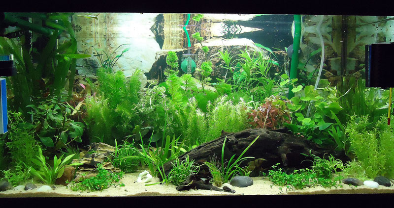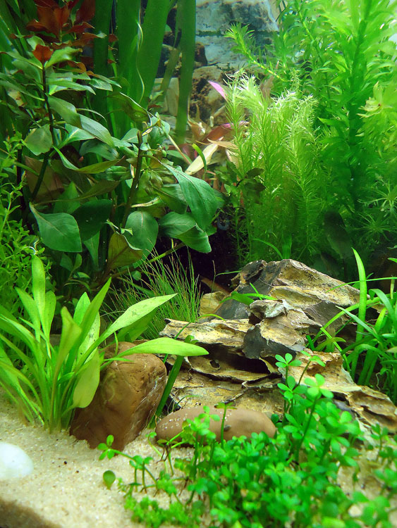 Und dann drei Fotos von meinem neugestalteten 112 Liter-Becken. Sieht nicht aus wie Aquascaping, aber ich habe mich einfach mal auf meine Intuition und so verlassen. Vor allem müssen die Pflanzen jetzt wieder vernünftig anwachsen und gekürzt habe ich die zu lang gewordenen Pflanzen auch noch. Deshalb sieht's jetzt wieder so kahl aus oben. Hoffe es gefällt trotzdem. Meinen Welsen (Panda, Zwergpanzerwels, Antennenwels und ganz neu Zwergschmerlenpanzerwels) gefällts sehr sehr gut.
