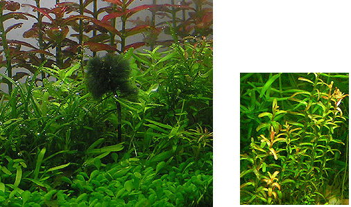 Die Algen hatte ich erstmal manuell abgezupft und den verbliebenen Rest eine gewisse Zeit nachher mit EC behandelt. Als der obere Austrieb dann irgendwann keine neuen Pinsels mehr zeigte, hatte ich die Spitze abgekappt und damit letzlich die anderen Stecklinge gezogen. War allerdings auch ein Extremfall, wobei man allerdings auch sagen muß das Pinsels einiges leichter in den Griff zu kriegen sind, als div. andere Algen. Die Grünalge vom Test war da wesentlich hartnäckiger, kam damals über die Limnophilia mini rein und vereinzelte Fäden existieren noch im 5L, habe dagegen aber auch keine drastischen Maßnahmen unternommen da in dem kleinen Nano auch einige meiner anderen Minis stehen. Dort werde ich die Alge daher mit einer kombinierten 2-3-2 (2Tage aus/3Tage an) Dunkelphase beseitigen, da ich feststellen konnte das die Alge dadurch von der Konsistens weich wird und dann gut angreifbar mit weitaus geringeren Dosierungen ist (als wie in dem 2,5L Test ohne Dunkelphase).