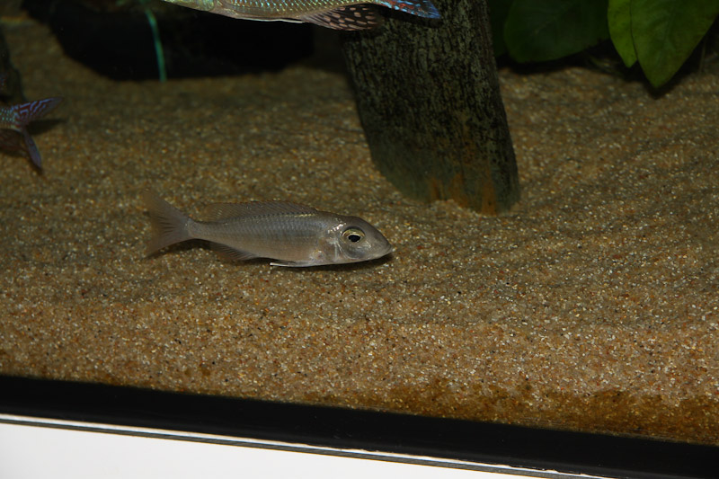 Und jetzt zu dem Interessanten Teil ... meine Fisch sind eine F1 (nachzucht von Wildfängen aus dem Malawisee) Lethrinops Albus Kande Gruppe die aus 5 Männchen und 5 Weibchen bestehen. Sie sind gerade 2 Jahre alt und voll auf einander abgestimmt. Und als letztes gibt es noch die kleine Aufwachsstation mit ca.25 Jungtieren die ich vor ein paar Wochen aus dem Aquarium retten konnte.