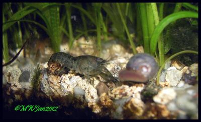 Als sie dann endlich ins 240Literbecken entlassen wurden, nahm der erste gleichmal ein durchlöchertes Schneckenhaus in Beschlag...jetzt muß ich die Dinger auchnoch untersuchen, bevor ich sie entsorge :ao: