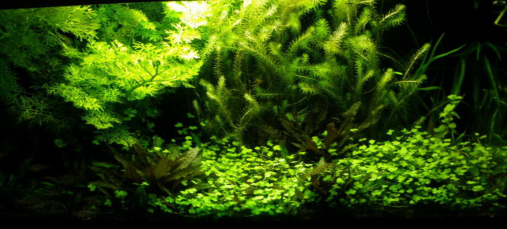 Dieser Unterwassergarten ist gänzlich ohne Hardscape und trotzdem finde ich ihn ganz nett komponiert. Es handelt sich um ein 112er Standardbecken mit 2x24W T5 beleuchtet.