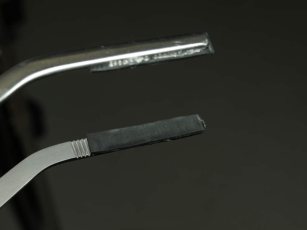 Und da kam mir die Idee die Pinzettenenden mit einem einem quietschgriffigen Gummi zu bekleben.