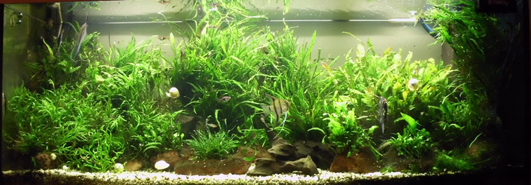 ich bin noch ein Foto meines Aquariums schuldig. Die Pflanzen haben leider unter den Schnecken und vor allem unter den Pickeln sehr gelitten. Außerdem fehlt noch die Vordergrundbepflanzung. :(