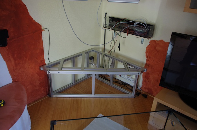 Auf den Bildern sieht man jetzt den Technikraum, die neu montierten Lampen und das neu montierte Becken für die Hintergrundbepflanzung. Heute wird das Stahlgestell umgeändert. Weitere Bilder folgen.
