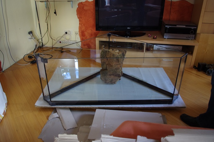 Mein altes Becken habe ich gestern abgebaut. Es war an der Zeit die Technik, das Glas und den Bodengrund zu erneuern. Die Technik funktionierte nur noch teilweise, das Silikon war verschlissen und der Bodengrund verbraucht. Also hab ich mich entschlossen mein altes Deltabecken mitsamt der Technik zu Schrotten. In Wien steht nun schon der Nachfolger, wieder ein Deltabecken. Die Technik habe ich im Vollbetrieb vom alten Aquarium schon vor 2 Monaten komplett umgebaut. Technik hatte ich genug zuhause da ich im April 2011 mein zweites Becken im Stiegenhaus (l180*h50*b35) ebenfalls geschrottet habe. Dieses Becken habe ich schon mit dem Gedanken die Technik wieder zu verwenden und weil es eigentlich immer das Stiefkind war (man sitzt nicht wie im Wohnzimmer davor) abgebaut.