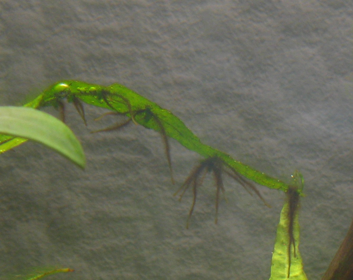 ich war drei Tage verreist und als ich nach Hause kam hatte mein Javafarn (Microsorum pteropus) so komische "Wurzeln" an einigen Blättern.