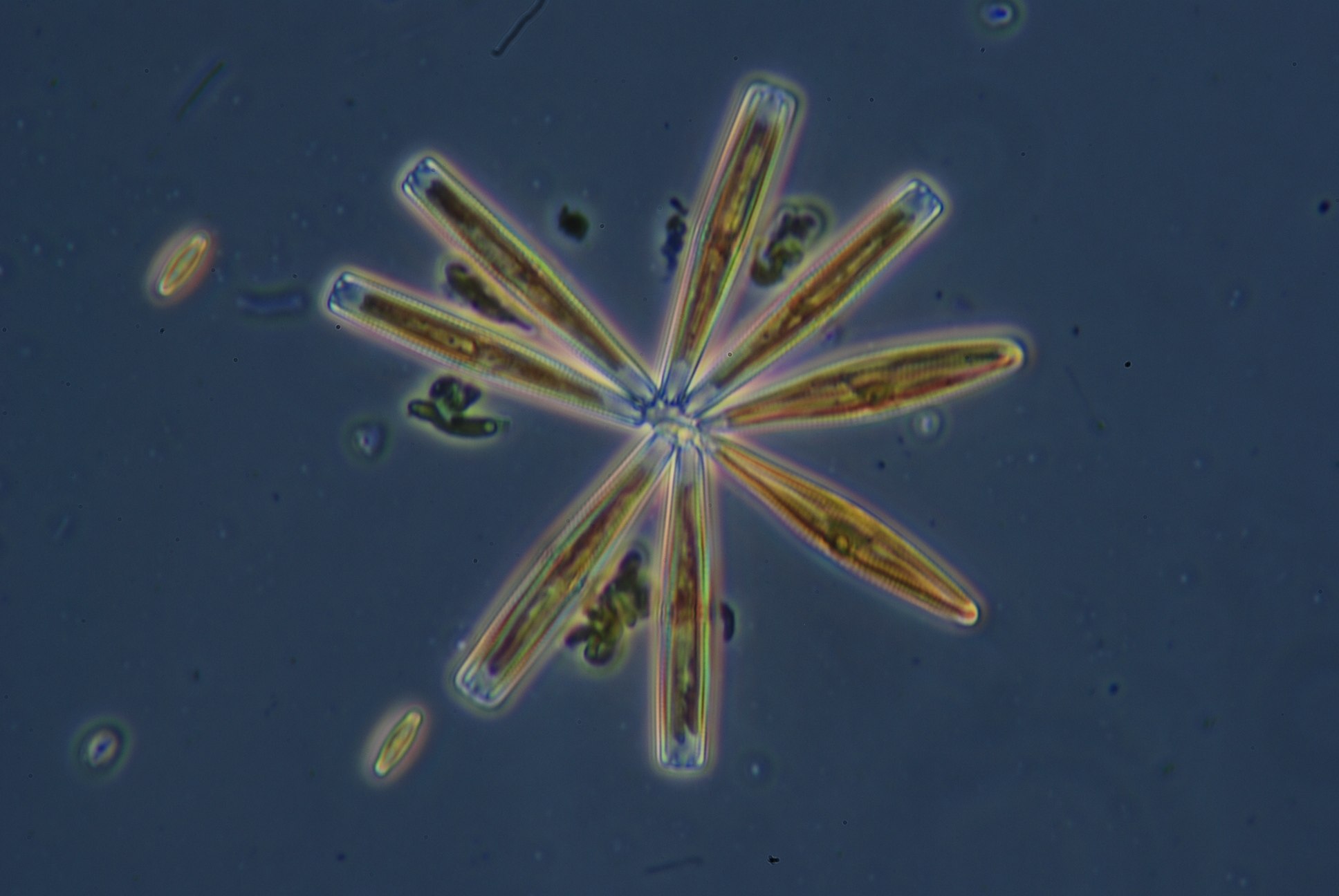 heute fand ich beim Durchmustern einer Probe aus meinem Aquarium eine nette Kieselalgenkolonie.