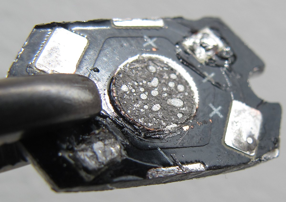 Schaut mal wie groß die Fläche der Bläschen hier bei meinen chinesischen LEDs ist, wenn man sie von der Sternplatine ablöst. :shock: