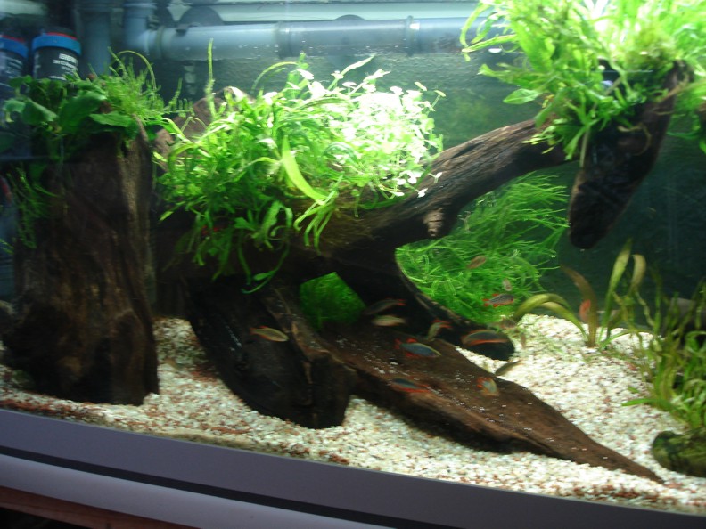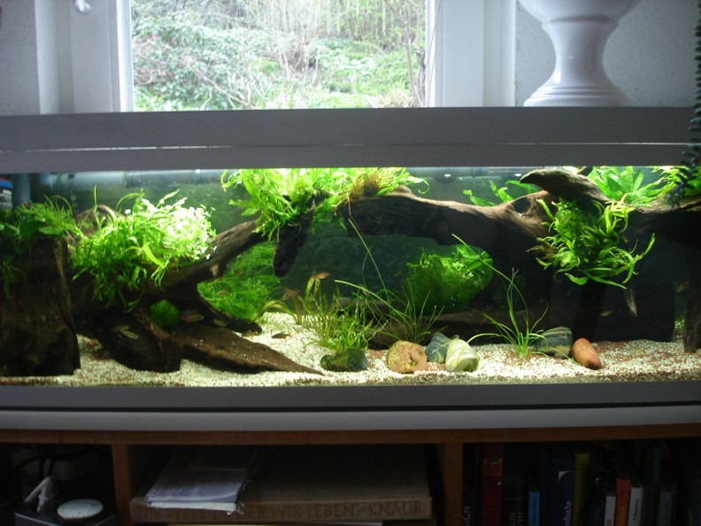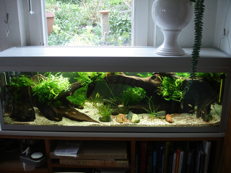 Hab alles komplett entsorgt und Manado mit Kies Körnung 1-2 mm gemischt, den ich noch hatte. Ausnahmsweise hab ich mal ein Wurzelbiotop gestaltet mit weniger Pflanzen und vielen Mangroven, die ich noch hatte. Für mich mal was ganz neues.