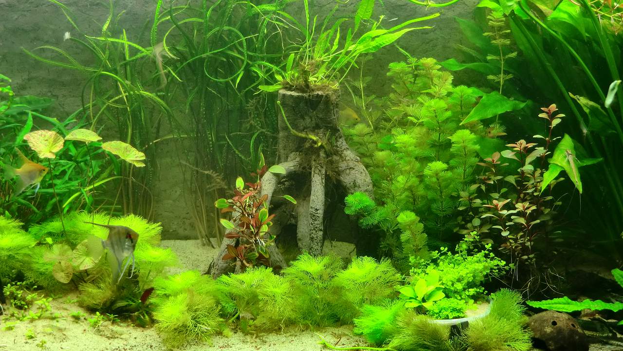 Und der Raum im linken hinteren Bereich, (neben Crinum, hinter den Cryptobäumen) ist mit Limnophila besetzt, die in einer guten Woche oben rausblitzen wird.