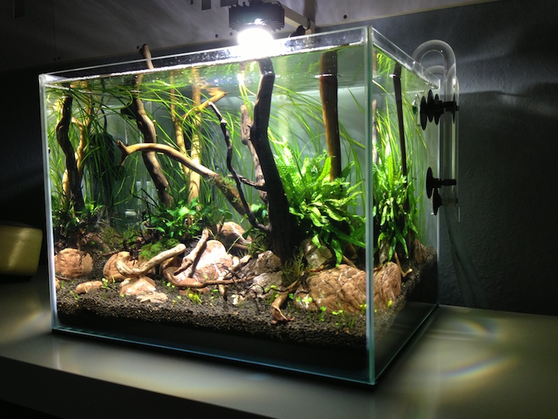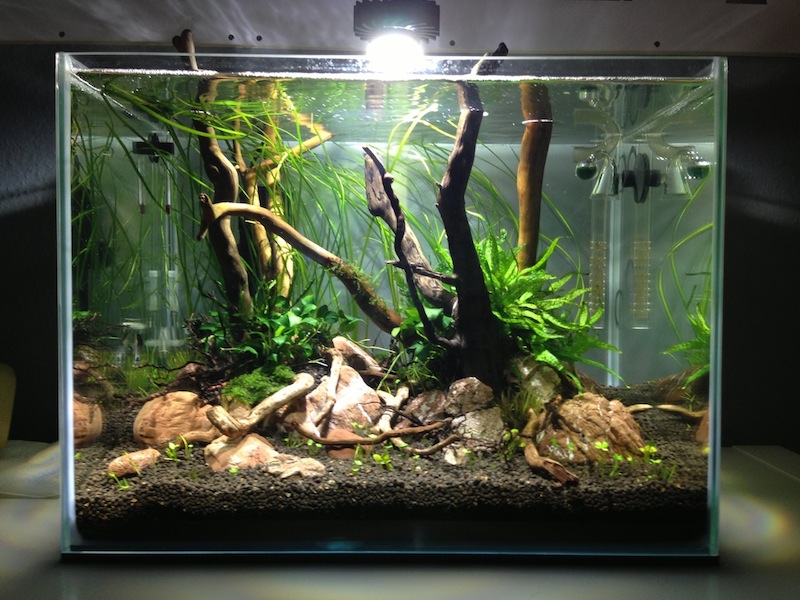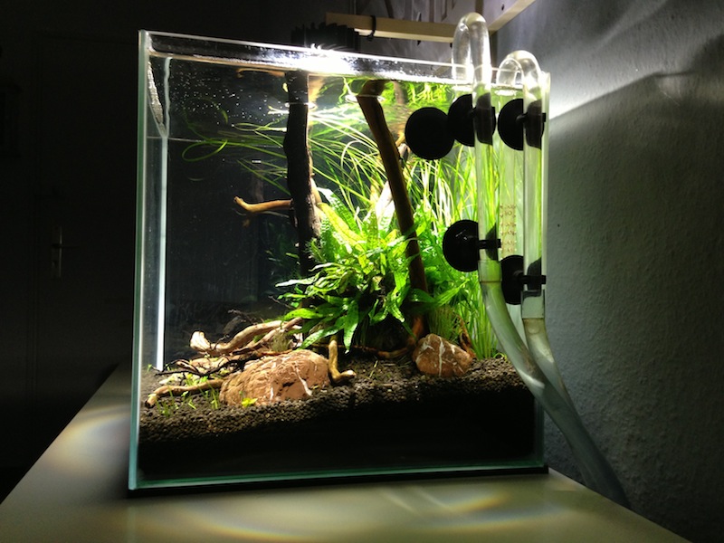 nach guten drei Jahren ohne Aquarium habe ich in den letzten Tagen wieder eins aufgesetzt. Nachdem ich bislang nur ungedüngte Sandbecken hatte, habe ich mich dieses Mal an Soil gewagt. Ich bin mal gespannt, wie das wird. Eins habe ich schon gemerkt: Pflanzen setzen ist deutlich schwieriger. Das Zeug ist einfach zu leicht...
