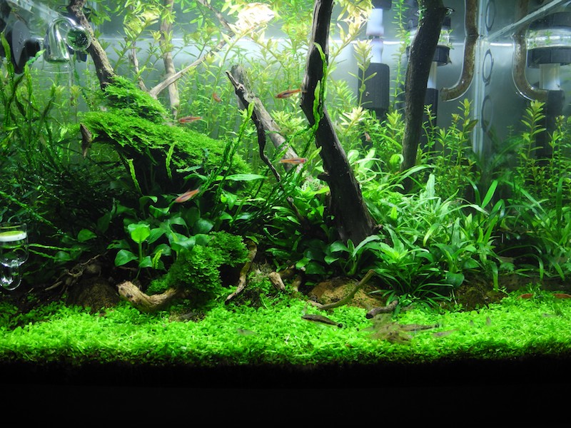 Der Farn hat ganze drei Blätter, die schön hinter den Anubien rausschauen. Mir gefällt es so.