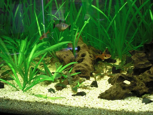 Es wird wohl mit dem Kies zusammen hängen. Meine Planung für demnächst wird sein den Kies wieder zu entfernen und durch gröberen und dunkleren zu ersetzen. Zusätzlich kommt eine helle Sandbank hinzu im vorderen Bereich für die Panzerwelse und Dornenaugen.