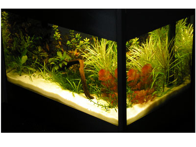 Wie unterbeleuchtet waren da unsere Industriebecken. Aber es mussten noch ein paar Jahre vergehen, bevor ich anfing, Aquarien aufzurüsten. Bis dato betrieb ich ein 230 Liter Müller und Pfleger Eckaquarium. 2003 war ich dann selber Zoofachhändler mit einem Elos-Fachgeschäft. Das war natürlich eine andere Liga - sechsflammige Abdeckungen ließen in dem Aquarium die Sonne aufgehen. Das Pflanzenwachstum war gigantisch. CO 2 Reaktoren aus Glas, kurz vor der Frontscheibe angebracht, wuschen das Co 2 auf ästhetische Art und Weise ein. Sobald wir die Abdeckungen hochklappten, sagten unsere Kunden "das will ich auch". Nicht jeder konnte sich eine Elos-Abdeckung leisten, also rüstete ich Aquarienabdeckungen auf - aus 2 mach vier. Es war ein Genuss in die glücklichen Gesichter zu schauen.
