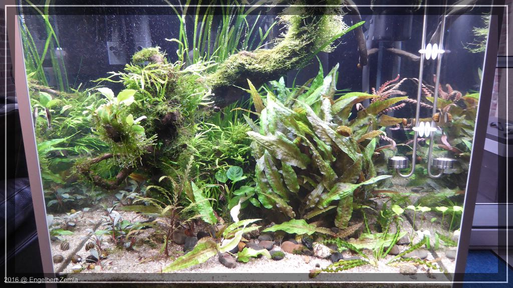 ich finde, es ist ein unheimlich schickes Becken. Mir gefällt besonders das Bild wo man sieht, wie es in die Wohnung integriert ist. Ich sehe den Pflanzen nicht an, dass es Probleme gab. Man sieht einfach, dass du ein gut funktionierendes Setup hast. Wie hast du die Algen in den Griff bekommen?