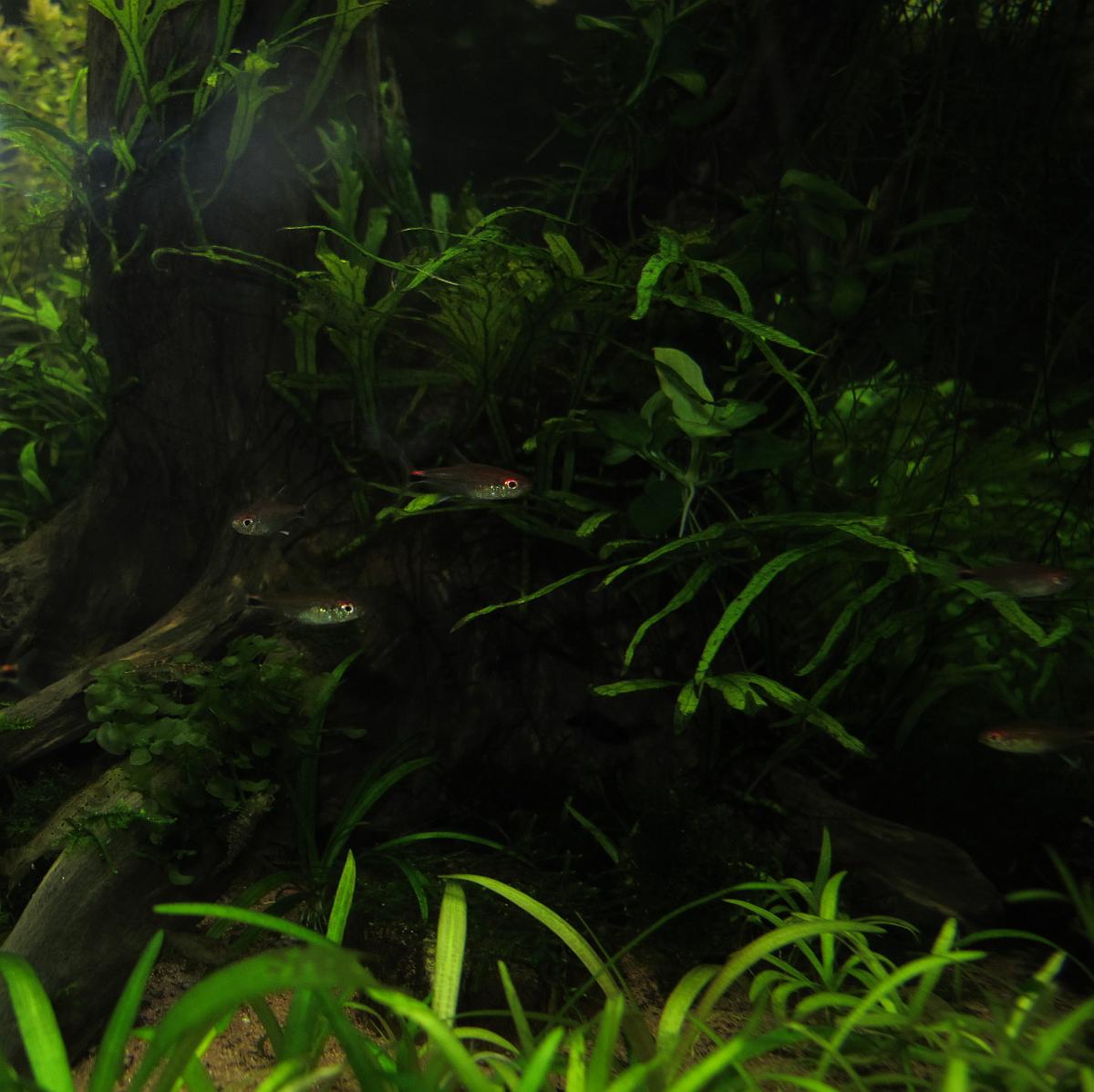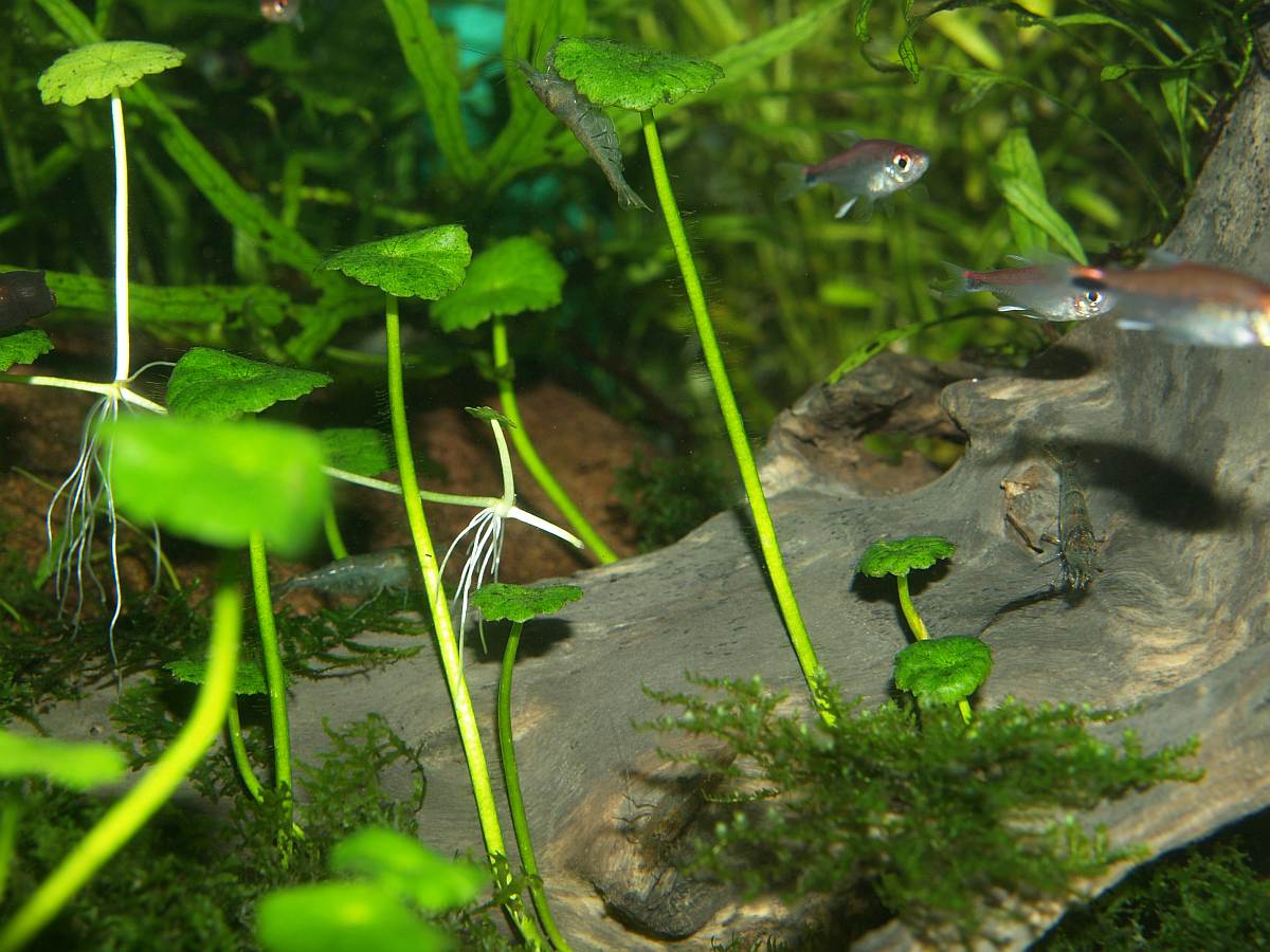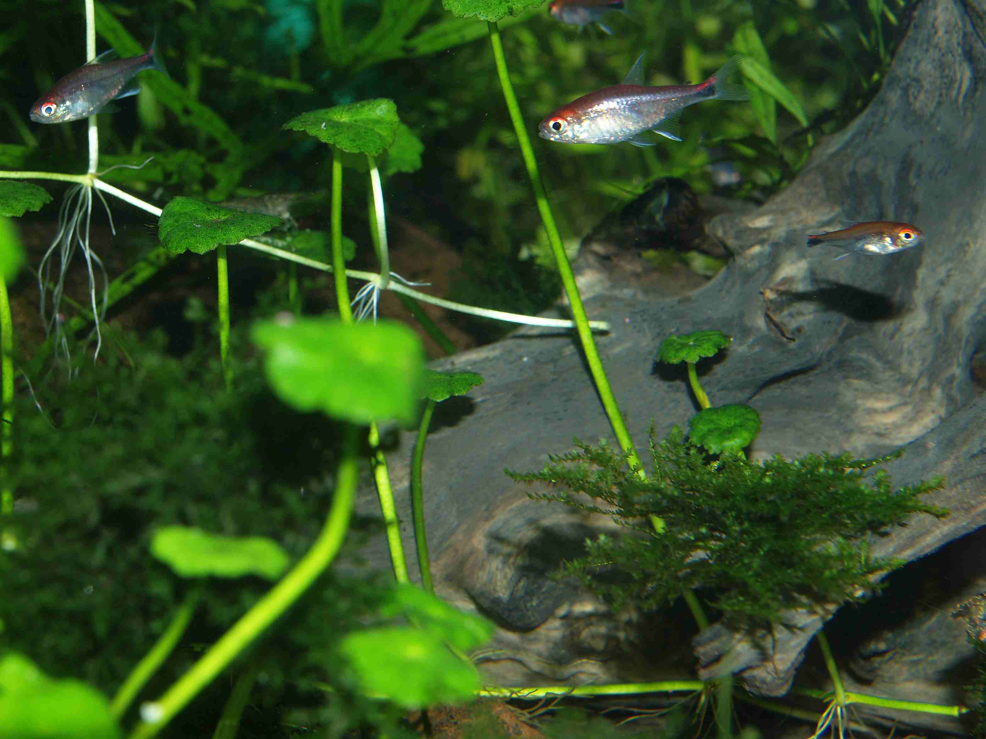 Die ersten Tage trieben sie sich meist unter dem bodennahen Blätterdach meiner Microsorum Trident herum.