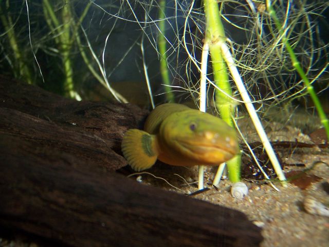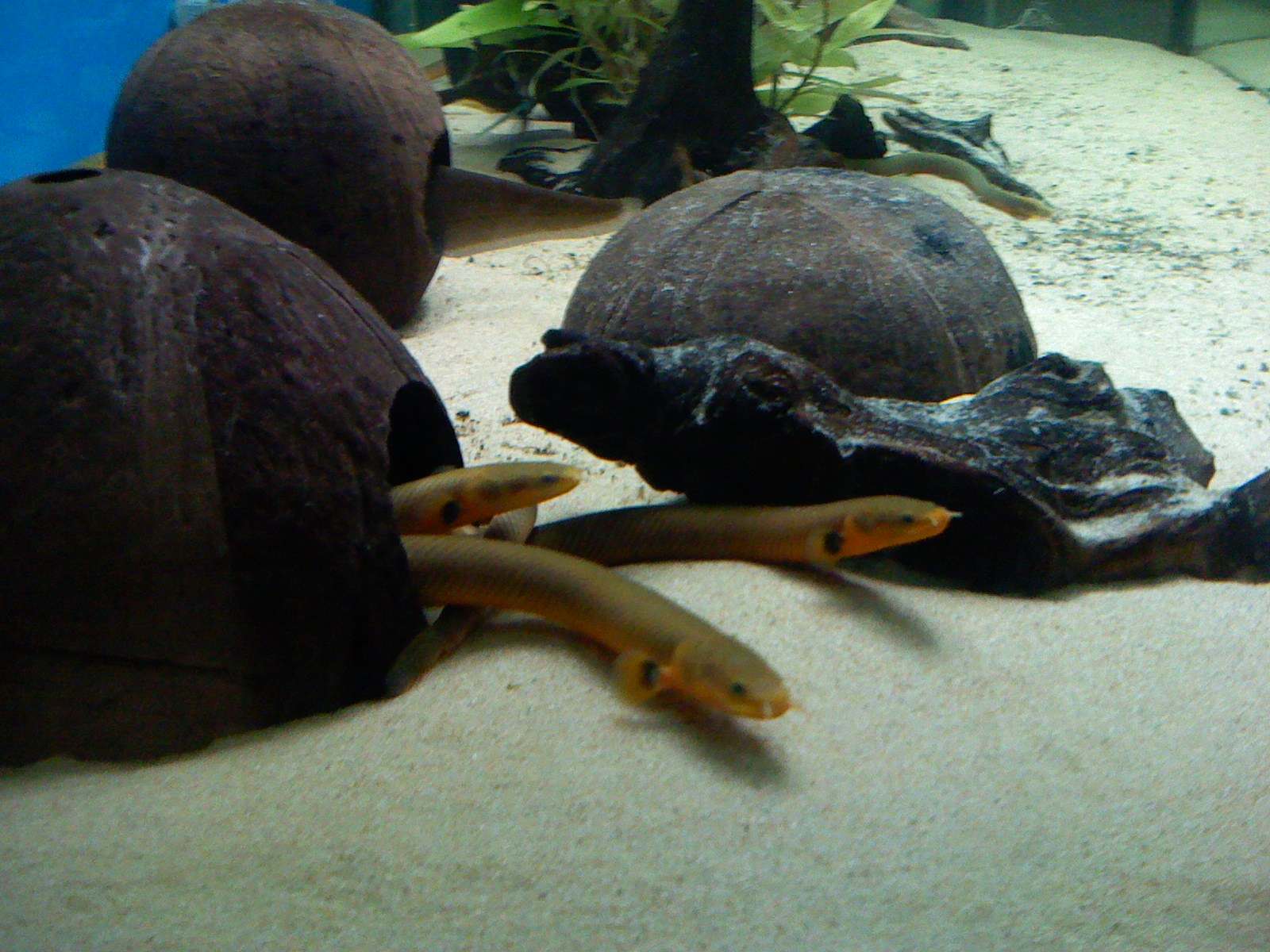 Ganz wichtig bei allen Flösslern ist ein absolut ausbruchsicheres Becken, viele Höhlen und gedämpftes Licht. Gestern abend hab ich sie beim „Wasserballett“ an der Scheibe beobachten können, sie bewegen sich wie Schlangen und ich war wieder total weg von ihnen, denn tags über bin ich manchmal etwas grimmig, so ein großes Becken und man sieht keinen.
