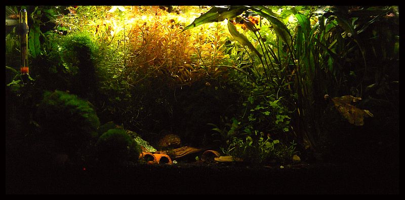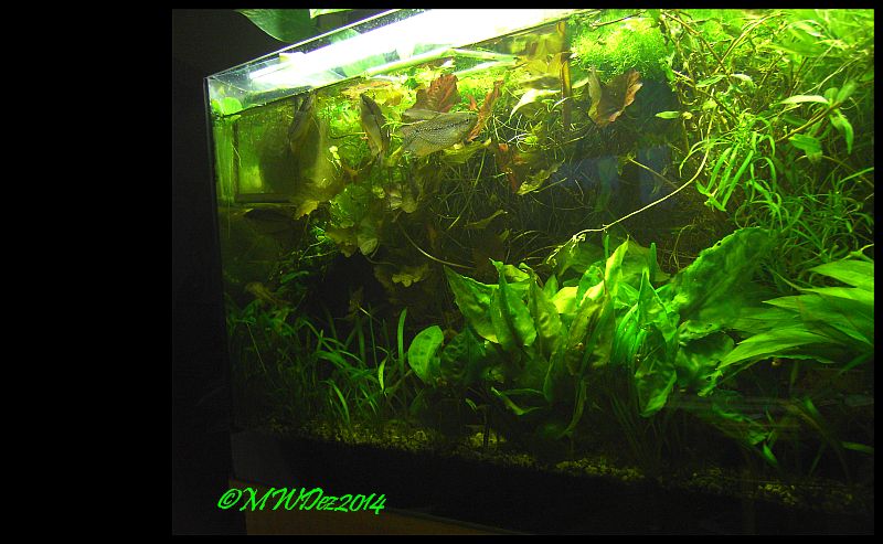 Rechts die Affinis, die is immernoch genauso, ok, hat viele Ausläufer bekommen nachdem ich ihr eine Nutriball spendiert hab, weil sie auch stagniert hat, halblinks eine einzelne Undulata, mitder ich auch recht zufrieden bin, links sitzt bei dem Tonhaken die Cordata, die mickert schon immer...geht nicht kaputt, wächst aber auch nicht und dahinter Crispatula balanase rot, die sind 3cm groß, aber gehen (noch) nicht kaputt...