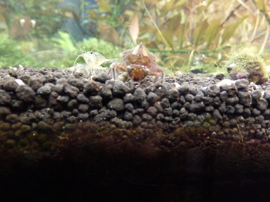 Naja..Ne Amano wird sie nichtgleich zum Frühstück vernaschen..die ist ja spielend doppelt so groß wie sie, oder?