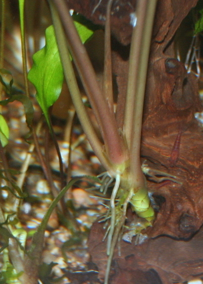 der Vollständigkeit halber stelle ich ein Bild von dem Rizom ein . Meiner Meinung nach ist dieses Rizom völlig untypisch für Bucephalandra , während die Blattoberflächen sehr typisch sind . Eingebracht habe ich diesen Beitrag weil meiner Meinung nach diese Pflanze doch etwas aus der Rolle fällt .