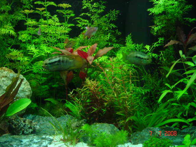 ein nettes Barschpärchen ! Ich mag meine auch, obwohl ich im andern Post auf sie geschimpft habe :wink2: . So gucken meine auch aus den, zugegebenrmaßen längst nicht so schönen , gepflegten Pflanzen vor.