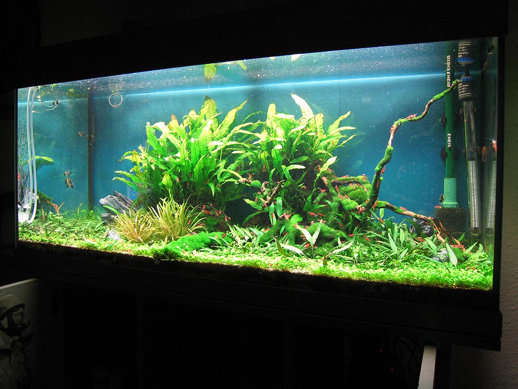 Durch die dritte 30 Watt Röhre ist der Verbrauch an Eisenvolldünger stärker gestiegen als ich dachte, jetzt hab ich ordentlich Piselagen nach Rückschnitt bekommen, wie man auf den Bildern erkennt, aber das Becken läuft jetzt schon so lange, das legt sich erfahrungsgemäß in 2-3 Wochen wieder.