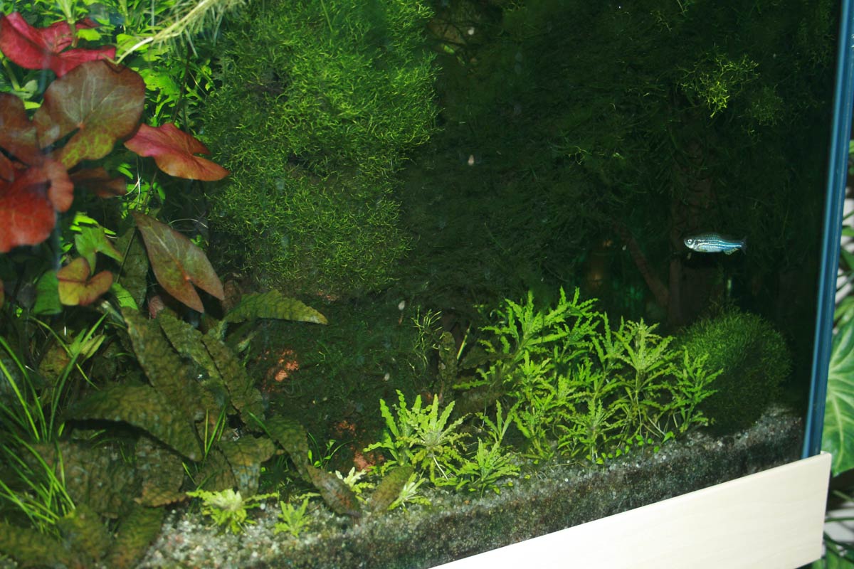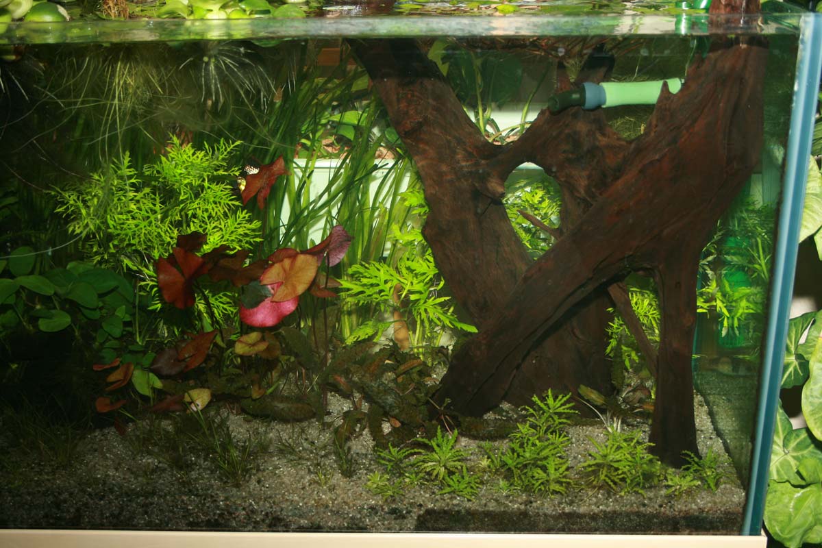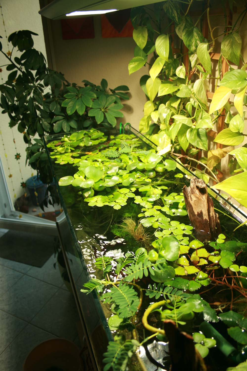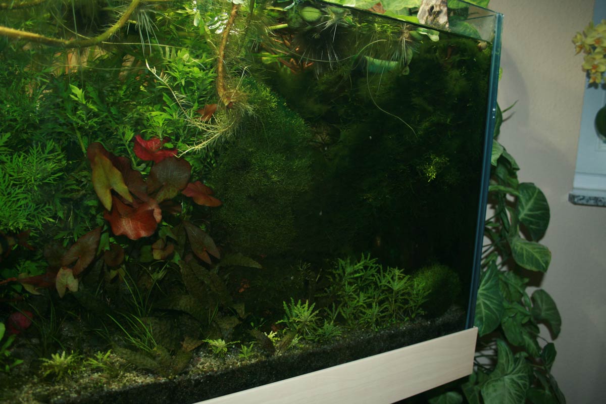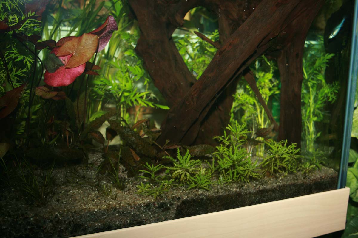 Anbei dann noch ein paar Bilder, inkl. Gesamtamsicht der Aquarienecke (gar nicht so einfach mit der HQI-Lampe über dem Becken, da reflektiert es immer in allen Ecken, na ja, auch das wird schon noch werden.)