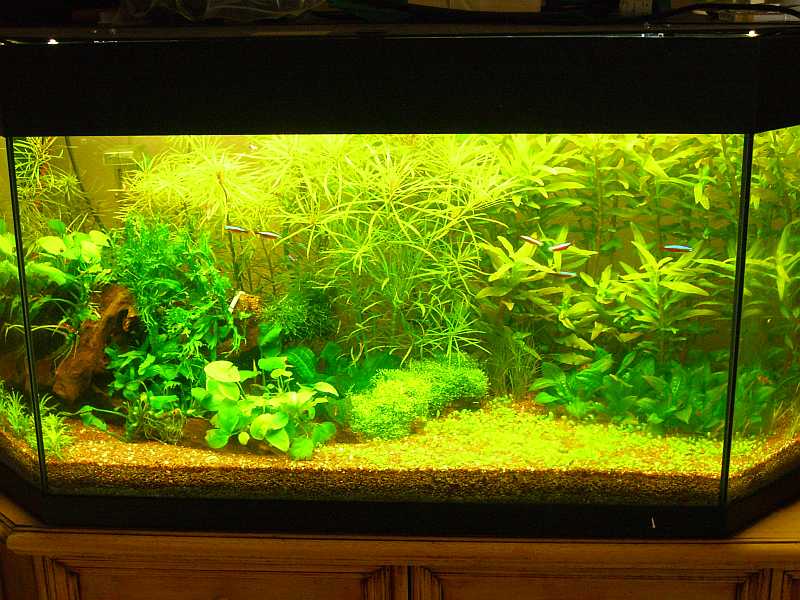 nachdem ich von dem Großbecken berichtet habe wollt ich auch gleich noch die Neugetalltung meines Panoramabeckens obendrauf setzen. Es handelt sich hierbei um ein 100er Panoramabecken das mit einem Eheim Professionell gefiltert wird. Zur Zeit ist eine 78 Watt T8 Beleuchtung drüber. Nach der Einlaufphase kann aber noch eine zusätzliche 30 Watt Röhre im hinteren Bereich installiert werden.